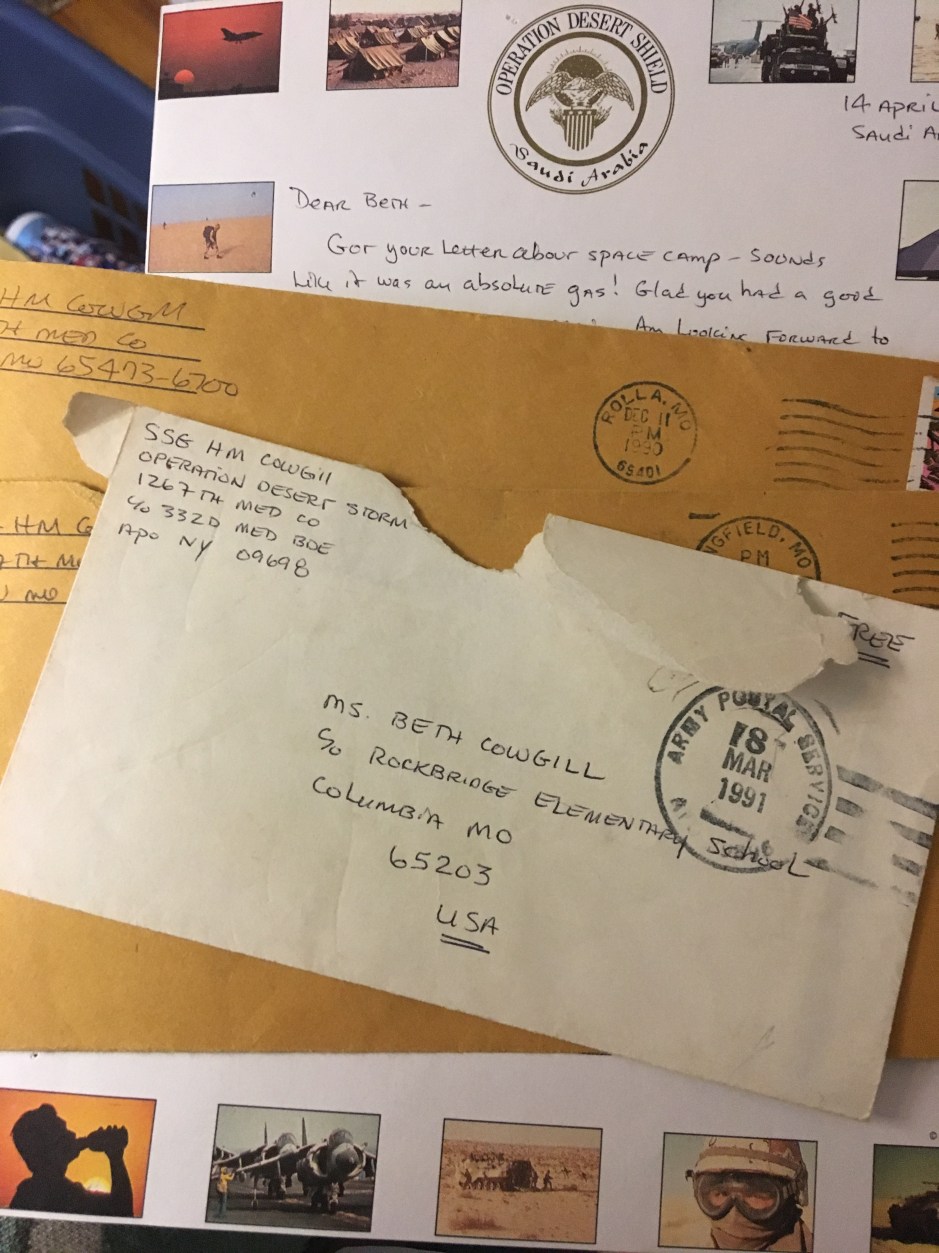 I don’t remember how many months he was gone, but today, I found several letters he sent me while he served overseas during Operation Desert Storm.